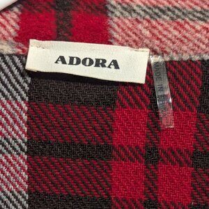 This is a nice women's ADORA Shirt Jacket (Shacket) in a size medium. Colors are black, red and tan. Features pockets and nice button down closure. Nice, gently worn condition