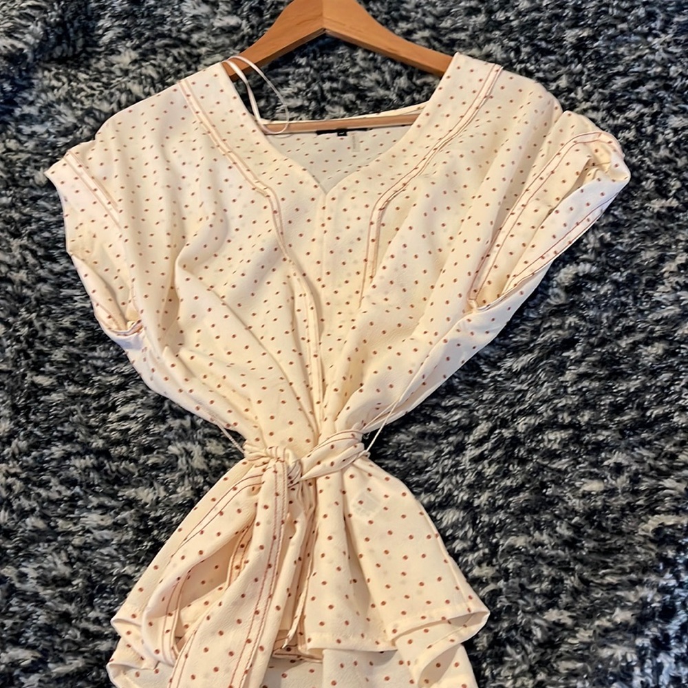 Adorable polka dot 1.State blouse. Size medium. Cream color with brownish polka dots. Tie waist. Like new!