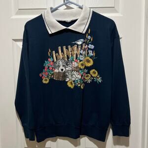 Super cute vintage floral cat and dog sweater with collar. Women's Size Small. Has a few small holes, see photos.
