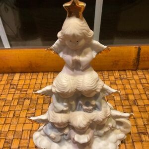 Cute & Festive Ceramic Angel Choir Christmas Tree. Muted Pastel Colors With Gold Stars. Good Preloved Condition.