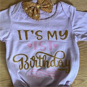 Adorable Girls 3 - Piece 1st Birthday Outfit, Cotton Short Sleeve Onesie, Tulle Skirt, and Headband Set