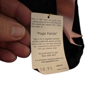 This adorable Geppeddo Cuddle Kids "Page Panda" plush is sure to bring a smile to your face! Measuring 9 inches tall, this panda has a sweet porcelain face and a cuddly body, perfect for snuggling.