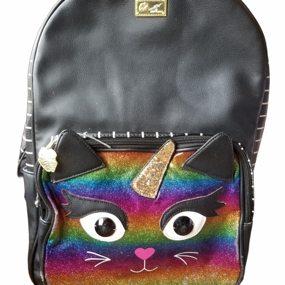 Betsy Johnson large book bag. Bottom has a few spots of wear. Zippers.and pulls are in tact.