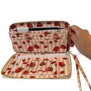 Adorable Betsey Johnson Strawberry Wallet/Wrislet. Tons of room for everything!