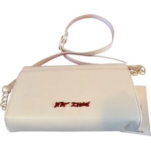 Adorable Betsy Johnson Off-White Crossbody w/ Red Heart Tacs.