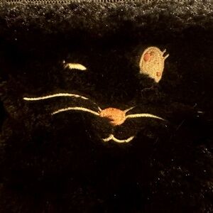 This charming black cat backpack is perfect for your little one's adventures. Its soft, plush design adds a touch of fun to any outfit. I suppose an adult could use it too if they want, there is adjustable straps lol so I would think anybody could use it if it is their style. There is a similar one (see last pic) for adults so I don’t see why not! Also similar to Betsey Johnson at backpacks. Minor flaw in left ear, pictured in photos. Other than that it’s in great shape!! Has plenty of room inside as well as has two pockets and zipper inside and a front pocket on face of cat.