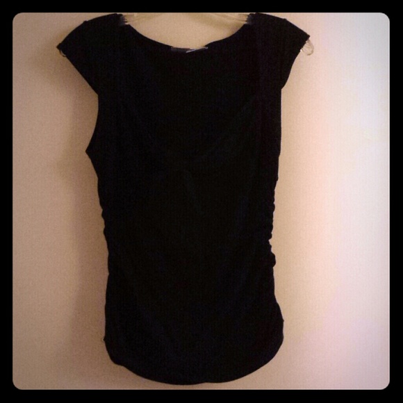 Adorable black top, tie front, rouched sides, cap sleeves. This top makes the girls pop ladies! A definite eye catcher when on! Jersey like material feel (polyester/rayon/spandex blend) I love this shirt but my girls have out grown it. Size L 11/13.