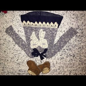 Has cute lace detailing and see-through mesh at the hem. On the back it has a bow you can tie.