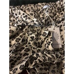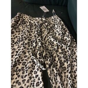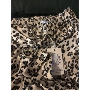 The product is a pair of adorable Blue Island wide leg cropped pants in size small. The pants feature a fun animal print pattern in multicolor, perfect for adding a playful touch to any outfit. With a wide-leg design and cropped length, these pants are both comfortable and fashionable, making them a versatile addition to any woman's wardrobe.