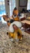Charming dog figurine in brown and white, perfect for pet lovers. A delightful addition to any home decor. See photos and video for details. Head moves on spring. Metal material could be used indoors or outdoors. Bundle with other items for discounts.