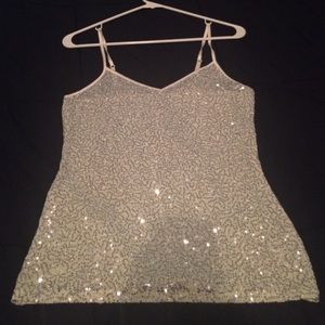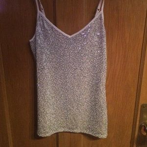 V-neck camisole; worn only once! Super cute with sequins all around to add some sparkle to the night. Adjustable straps.