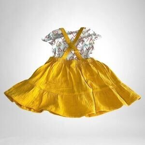 Adorable! - Cat & Jack 2-Piece Yellow Gauze Bib Dress & Heart Top Set Size 4T