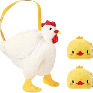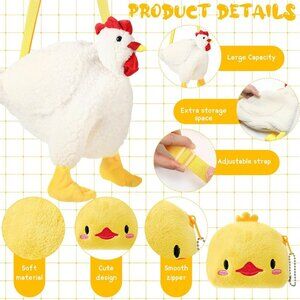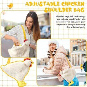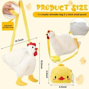 Features: This cute set includes two fluffy chicken-shaped purses and a stylish shoulder bag, perfect for adding fun and practicality to your daily outings. The shoulder bag measures about 15.75 x 10.24 inches, large enough for your phone, cosmetics, and essentials. The adjustable strap makes it easy to customize fit, whether you're shopping, commuting, or heading to a party. The smaller purses—about 4.33 x 3.35 inches—are ideal for coins, cards, or small treasures, with a playful rooster and chick design that adds a lively touch.