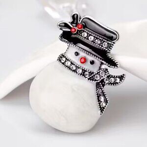 Adorable Christmas Snowman Brooch with Black Hat and Scarf