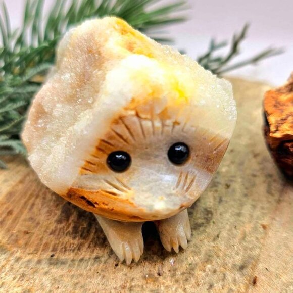 Adorable Crystal Cluster Hand Carved Cute Big Hedgehog Figure