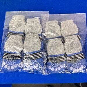 All are brand new never used. Blues and grays. Little bones on the bag and paws on the two sets of little socks. Adorable! Bag could also be used for dolls.