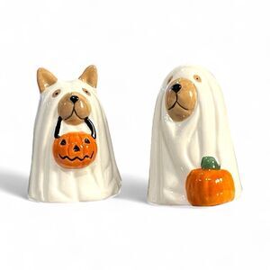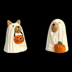 Adorable Dogs Dressed in Halloween Ghost Costumes Ceramic Salt & Pepper Shakers