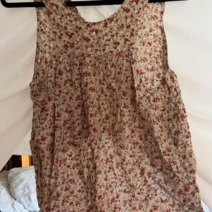 Very cute floral sleeveless top with dramatic high- low top, purchased at boutique in LA, size small. Top is very short in the front and looks like a crop top with long dramatic flowy back! Second image shows you the dramatic contrast in front and back length. Super light and breathable fabric and v adorable floral print.
