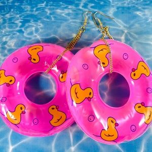 Adorable Duckie Hot Pink Pool Float inflated Earrings