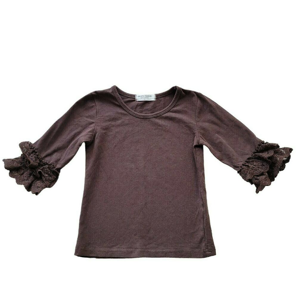 Adorable Essentials Brown Ruffle Top, size 2t. GUC for minimal washwear/fade.