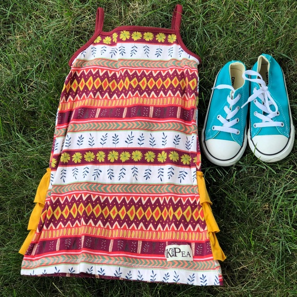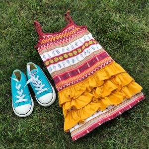 Can be worn as a tank and/or dress depending on your little ones size. Gorgeous Fall Colors Kpea Ruffle Back, Size 4, beautiful colors, can be worn in multiple different ways. Please look at my pictures as they are part of my description. If you have any questions please feel free to ask.