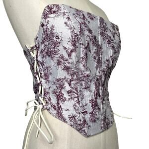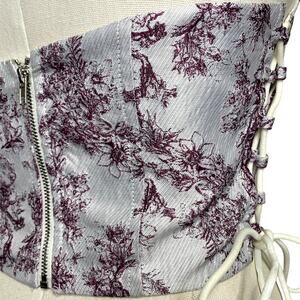 Adorable Floral Embroidery Lace Up Corset Blouse