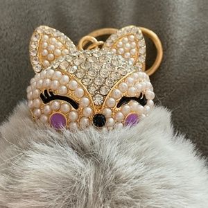 Adorable Furry Rhinestone Fox Keychain/Bag Charm NIB
