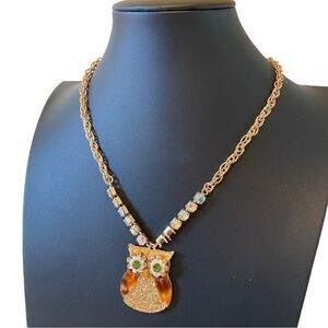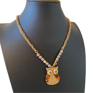 Adorable Glittery Gold Owl w/ Amber, Green & Aurora Borealis Crystals.
