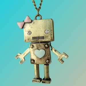 Golden necklace cute necklace little girl's necklace for little girl fun necklace for any age robot necklace robot jewelry robot accessory robot accessories movable robot