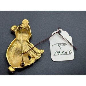 This pre-owned brooch is a vintage and antique jewelry item that is perfect for collectors and fashion enthusiasts alike. Whether you want to add it to your collection or wear it as a statement piece, this brooch is sure to delight. The unknown metal material adds to its mystery and allure, making it a must-have for anyone who loves unique and quirky accessories. Pin measures 2 x 1.5 inches and is in excellent condition.