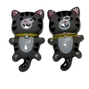 Adorable Gray Kittens Plastic Earrings Post Back Studs 1 inches Cat Lover.