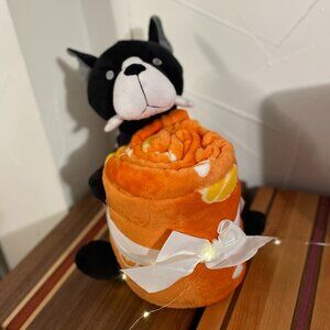 "The Big One", a Halloween Skeleton Dog Plush Stuffed Animal with 50"x60" Throw Blanket.