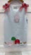 This charming kids dress features a delightful farm scene with playful animal appliqués. The light blue fabric is beautifully accented with red checkered bows, making it a fun addition to any child's wardrobe.