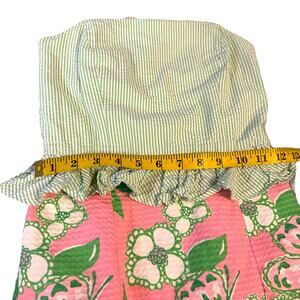 Adorable Lilly Pulitzer Strapless Seersucker Green and Pink Dress - Size 00