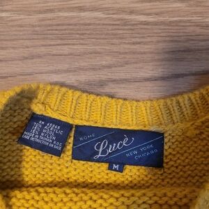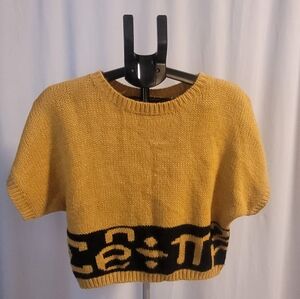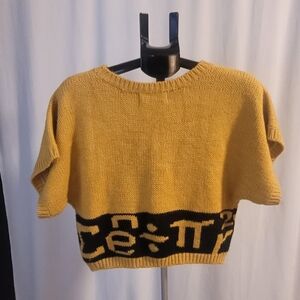This unique mustard and black short sleeved sweater has math formula details around the bottom. It's perfect for math aficionado who also wants to look cute! Size medium by Luce.