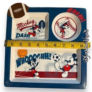 This charming Mickey Mouse kids plate is perfect for making mealtime fun and organized for your little ones. Measuring 9.5 inches by 9.5 inches, this plate features three sections to keep different foods separate, ideal for picky eaters who prefer their food not to touch.