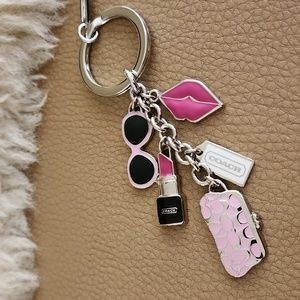 Absolutely adorable new without tags Coach lipstick, sunglasses, lips, and clutch bag charm or key ring is in excellent never used condition. Super cute, colorful, and shiny sunglasses, lips, lipstick, and clutch charms with matching hangtag on silver chain and key ring. It measures approximately 4 1/4" from top of ring to bottom clutch charm. So stinkin adorable!! From non-smoking home. ๐๐๐ถ