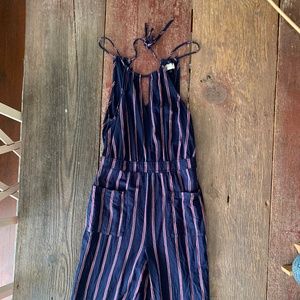 Adorable Universal Thread Jumpsuit in navy, white and red, women’s size medium. Halter, tie-neck. Cropped, wide-leg with back pockets. In good, used-condition. Super-cute and breezy!