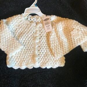 Super cute Soft Knitted Cardigan sweater with flower buttons and matching Beanie Hat. New with Original tags.
