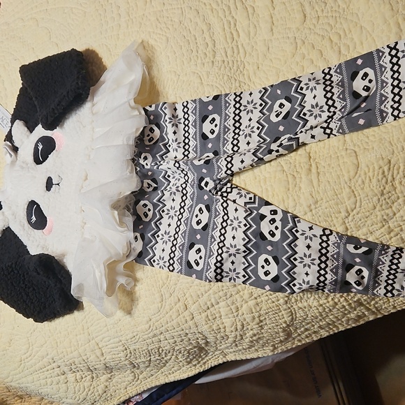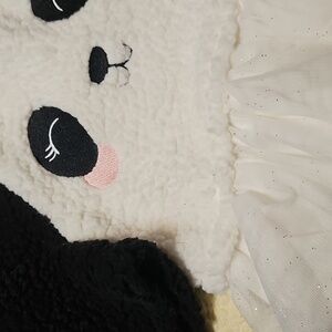 Dress your little one in this adorable panda-themed outfit. Featuring a cute panda face and a playful black and white pattern,