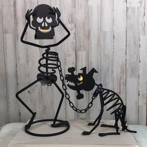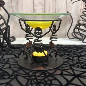 Adorable Partylite Halloween Decor - Mr. Bones and Dog and Cat with Aroma Warmer