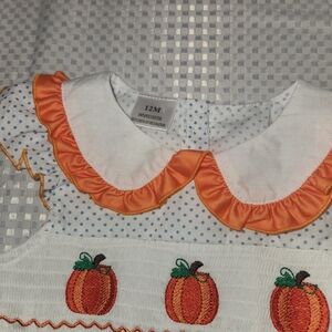 Adorable Pumpkin/Fall Baby Girl Romper Size 12 Months A3