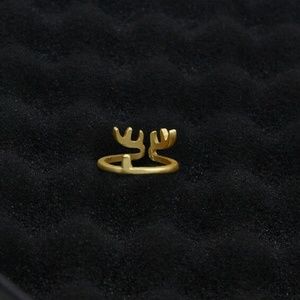 Adorable Reindeer Deer Gold Antlers Holiday Christmas Ring
