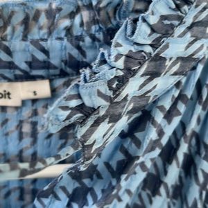 Really cute hip blouse. Lots of detail. Longer in the back. Ruffle neck