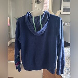 Navy hoodie with vibrant Roxy logo design. Features a full zip and cozy fit. Ideal for everyday wear.