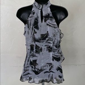 Adorable Ruffle Blouse with Print, Print is Black, with Splashes of Metallic!