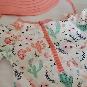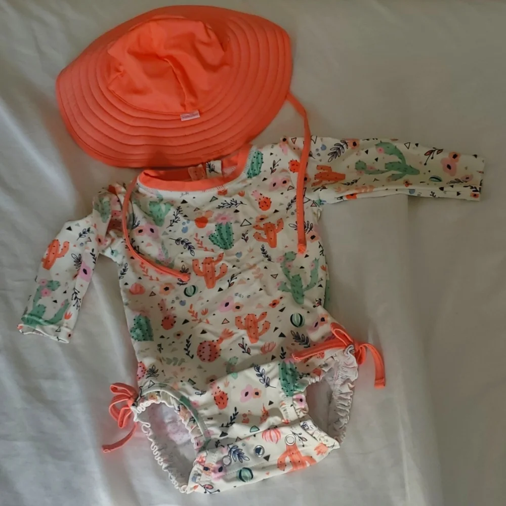 the perfect rashguard with the cutest print for your baby girl. Very gently used rashguard set with a hat. We're ready for the beach!