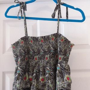 This sundress hits right at the knee, has adjustable tie straps, and layers of ruffles! It's a part of the Liberty of London collection for Target and has a fun feathered print! Great for summer!