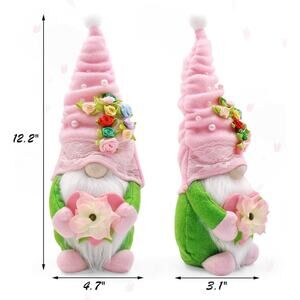 Large Size & Unique Design: The flower gnomes measure 12.2 inches tall from the top of the hat to the base and 4.7 inches wide. They are big enough to catch everyone's attention. They are also well designed. The flower, the buttons and the bows joined in the hands represent the qualities that a lady has: beauty, diligence and aesthetics.