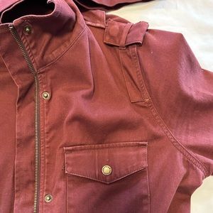 This coat is just a bit big on me now but I love it! Has four pockets on the front, cute solider straps on shoulders and a detachable hood. I also love it has an internal waist band so help show off curves! It’s awesome for fall being mostly cotton. I think it’s great as it covers your butt so sitting on a pile of hay during a hayride won’t get your jeans dirty! Originally received in a stitch fix box! Hope you love it!